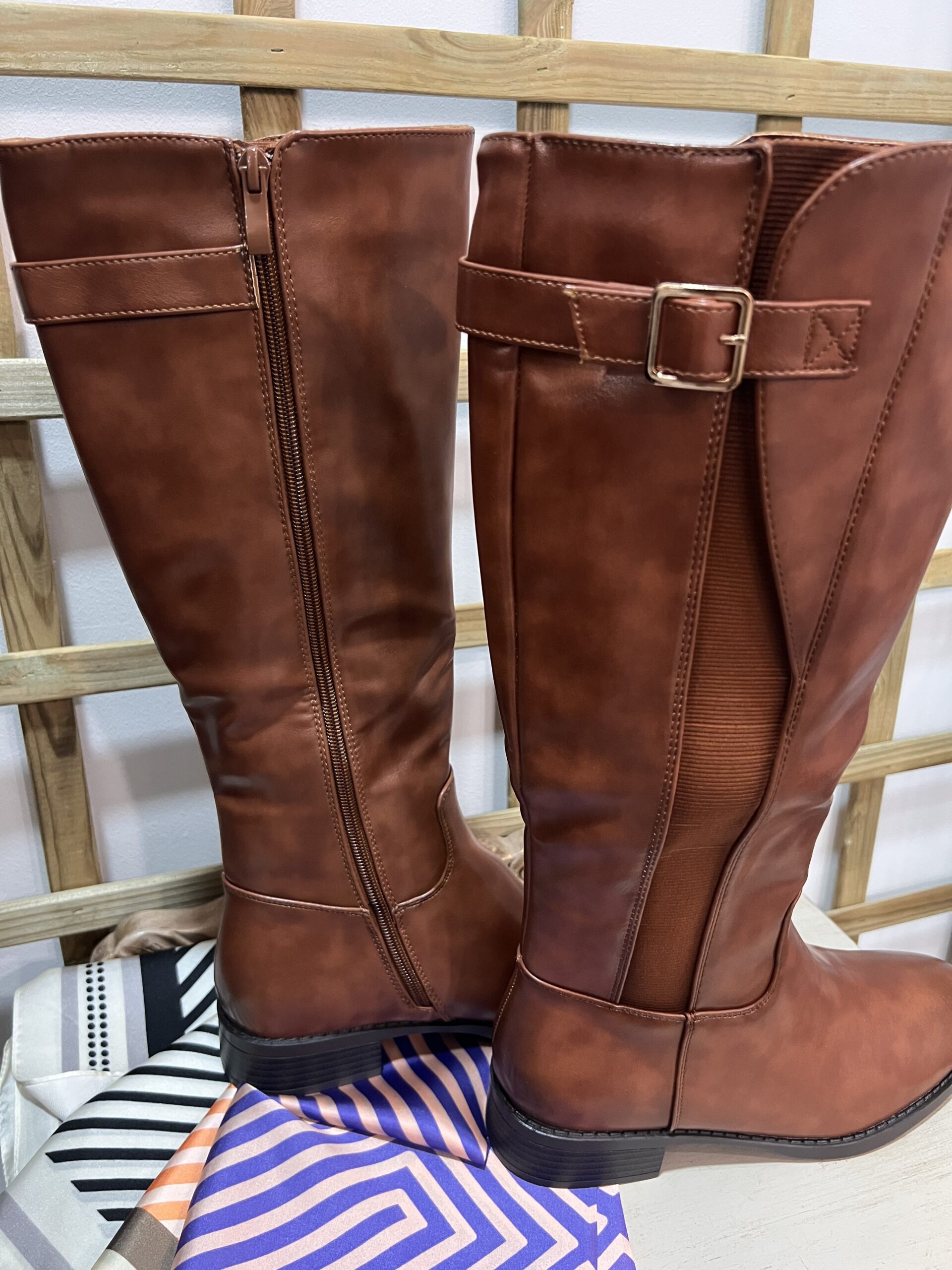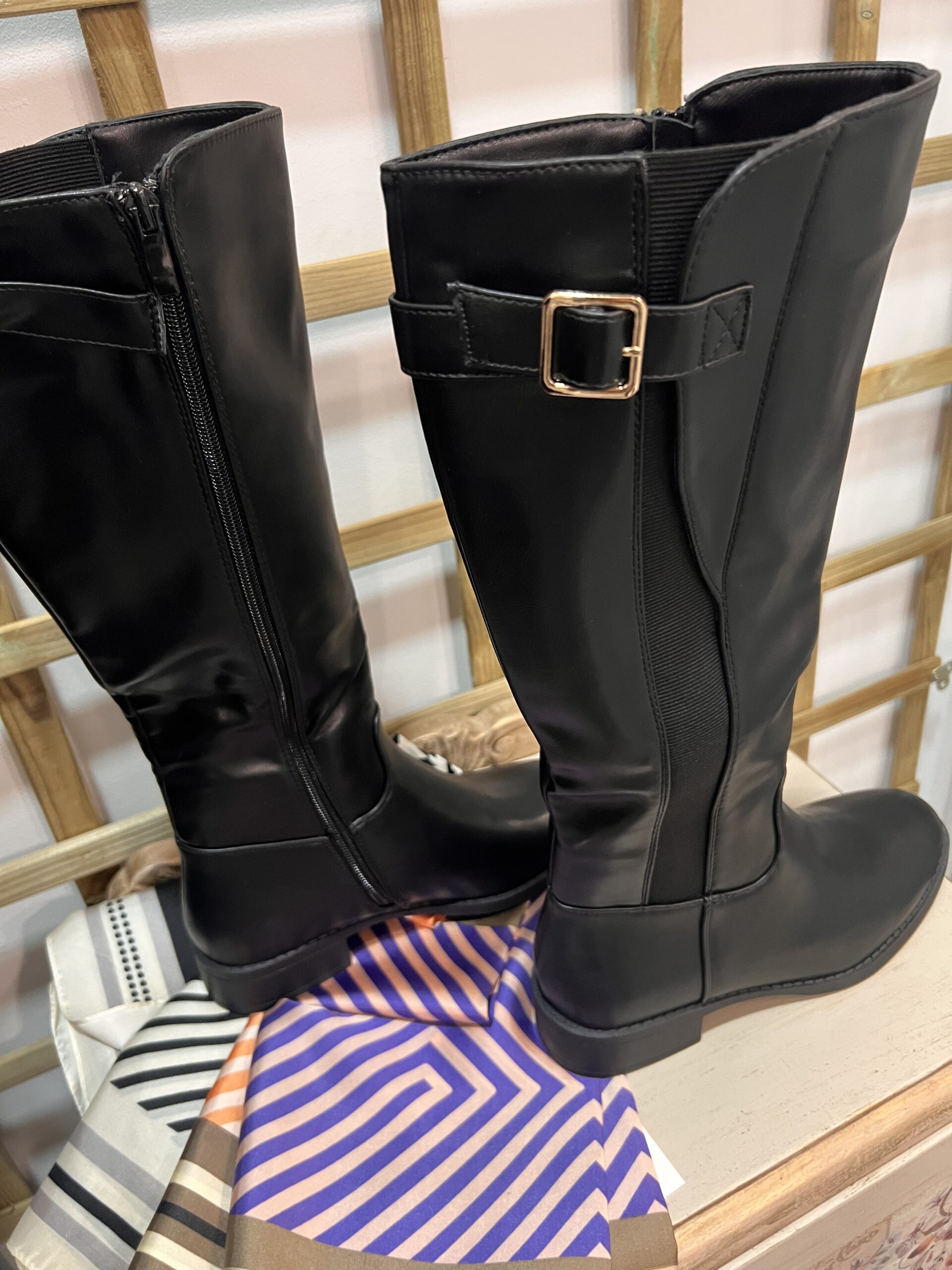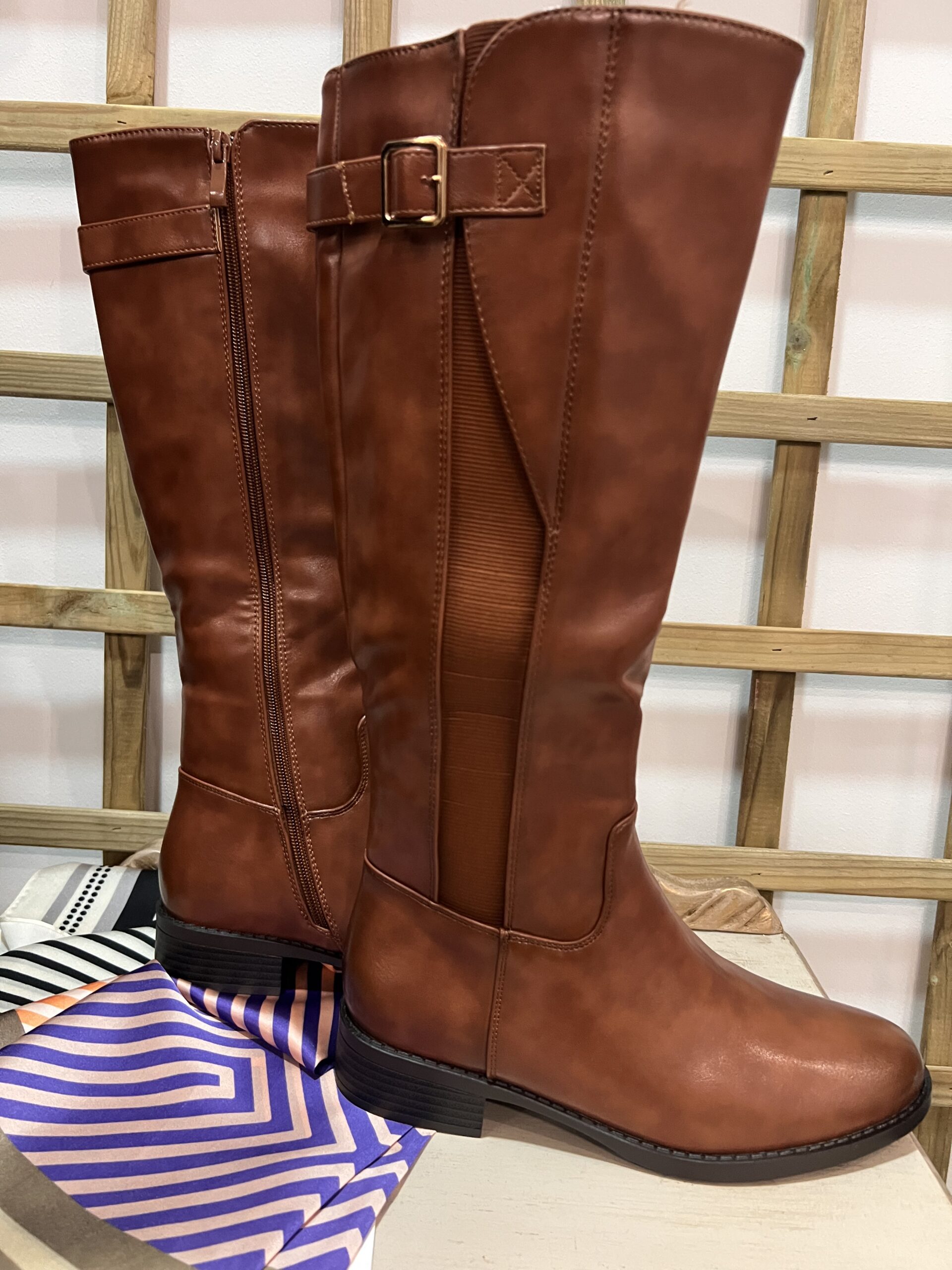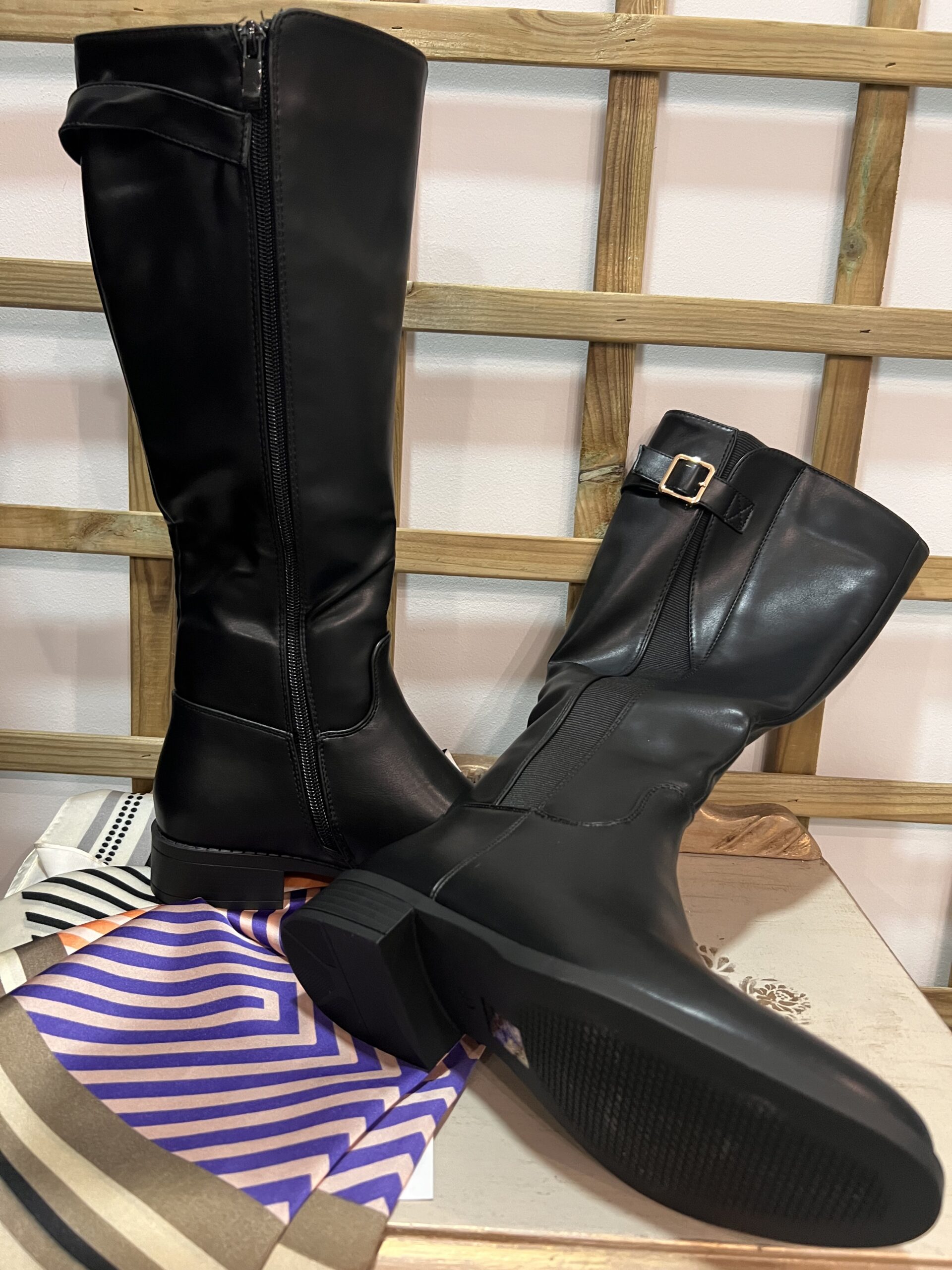 Cremallera lateral , hebilla decorativa y goma en el lateral