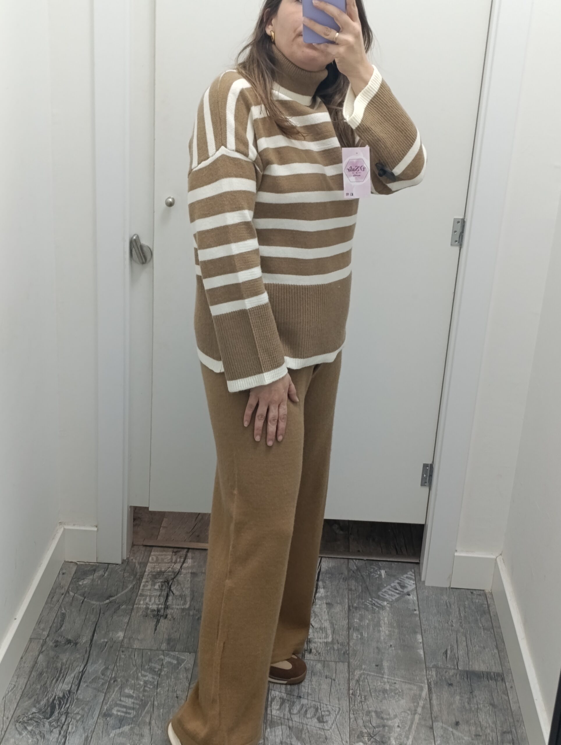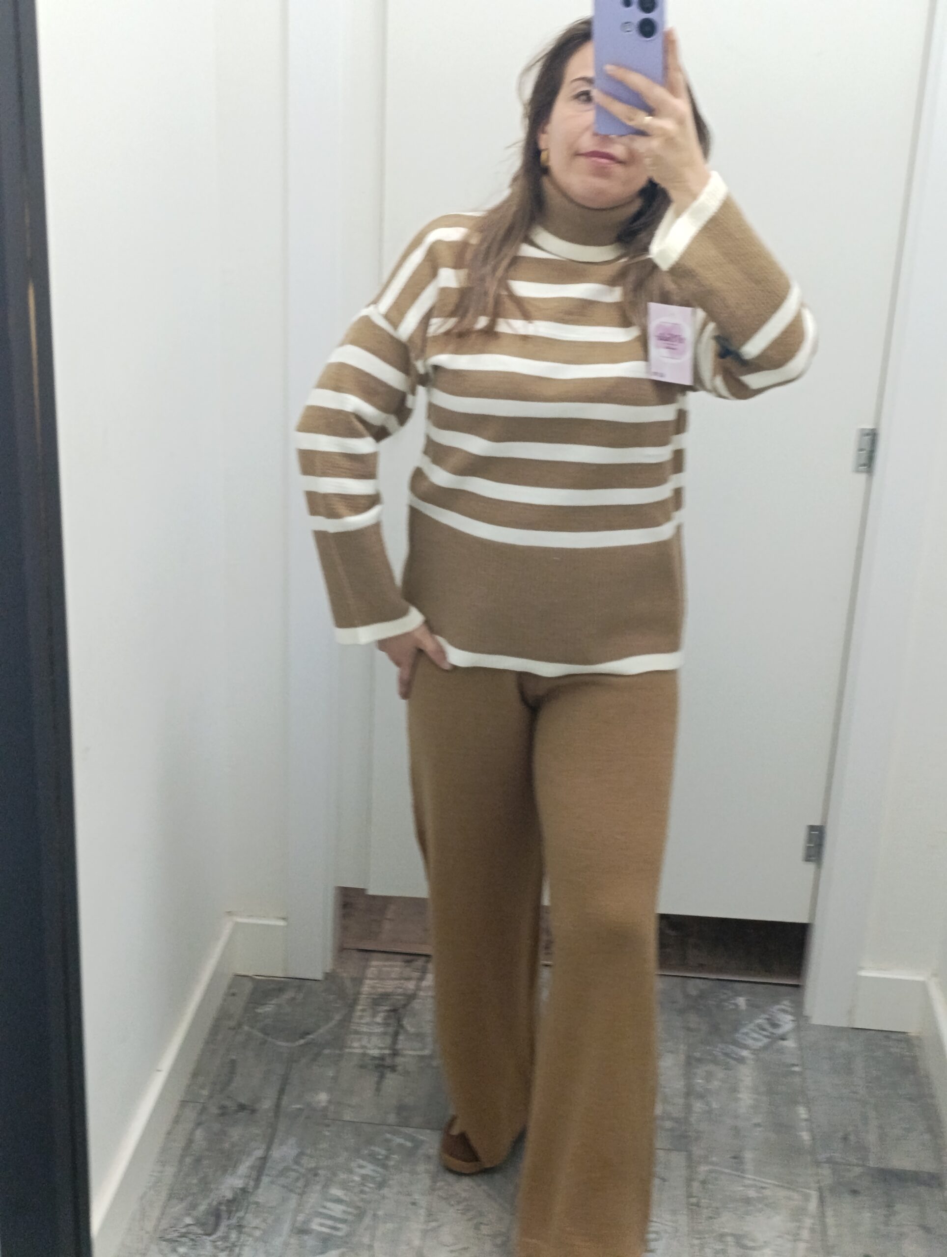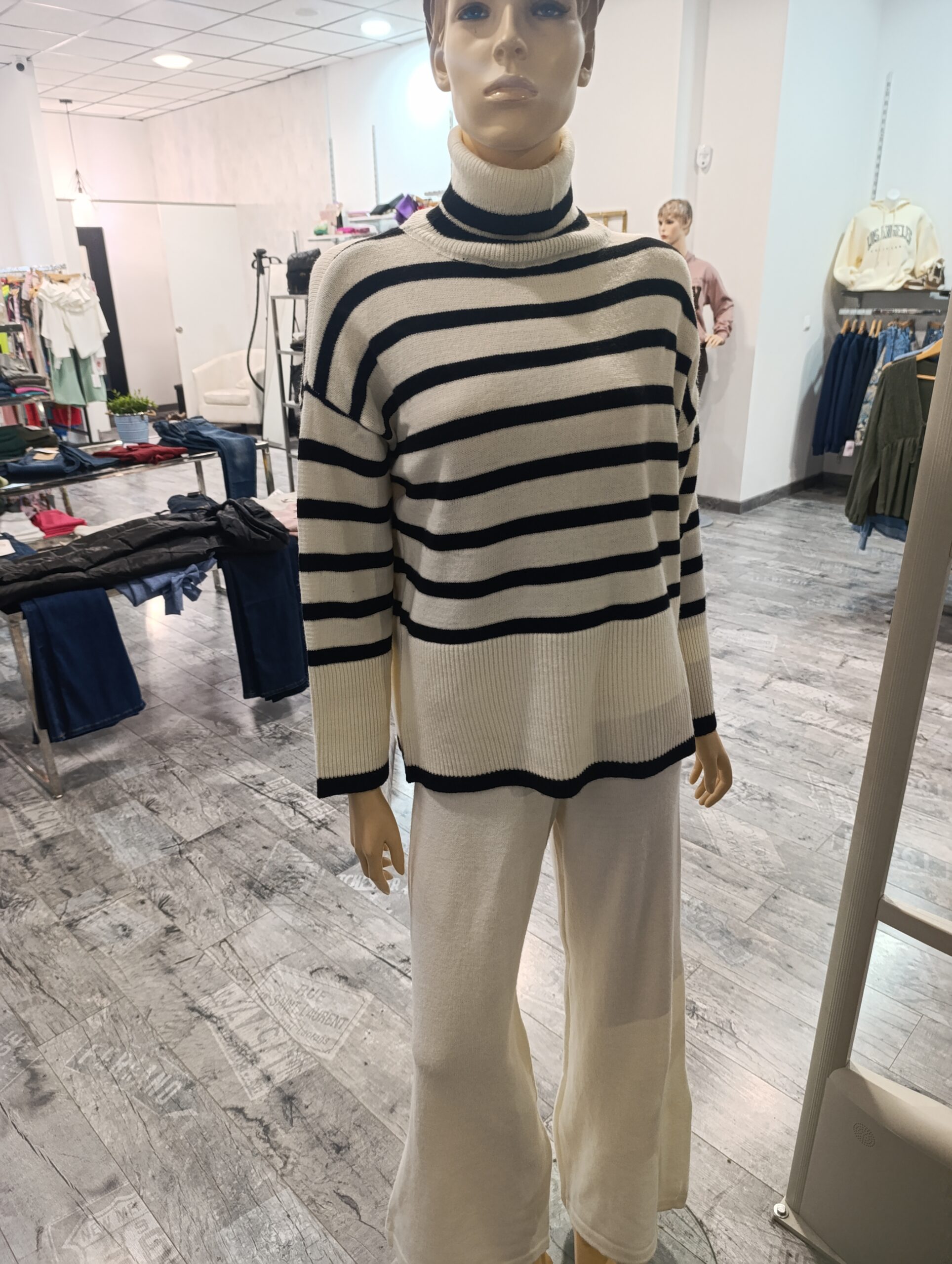 Conjunto de pantalón y jersey de cuello vuelto. Viene en dos tallas