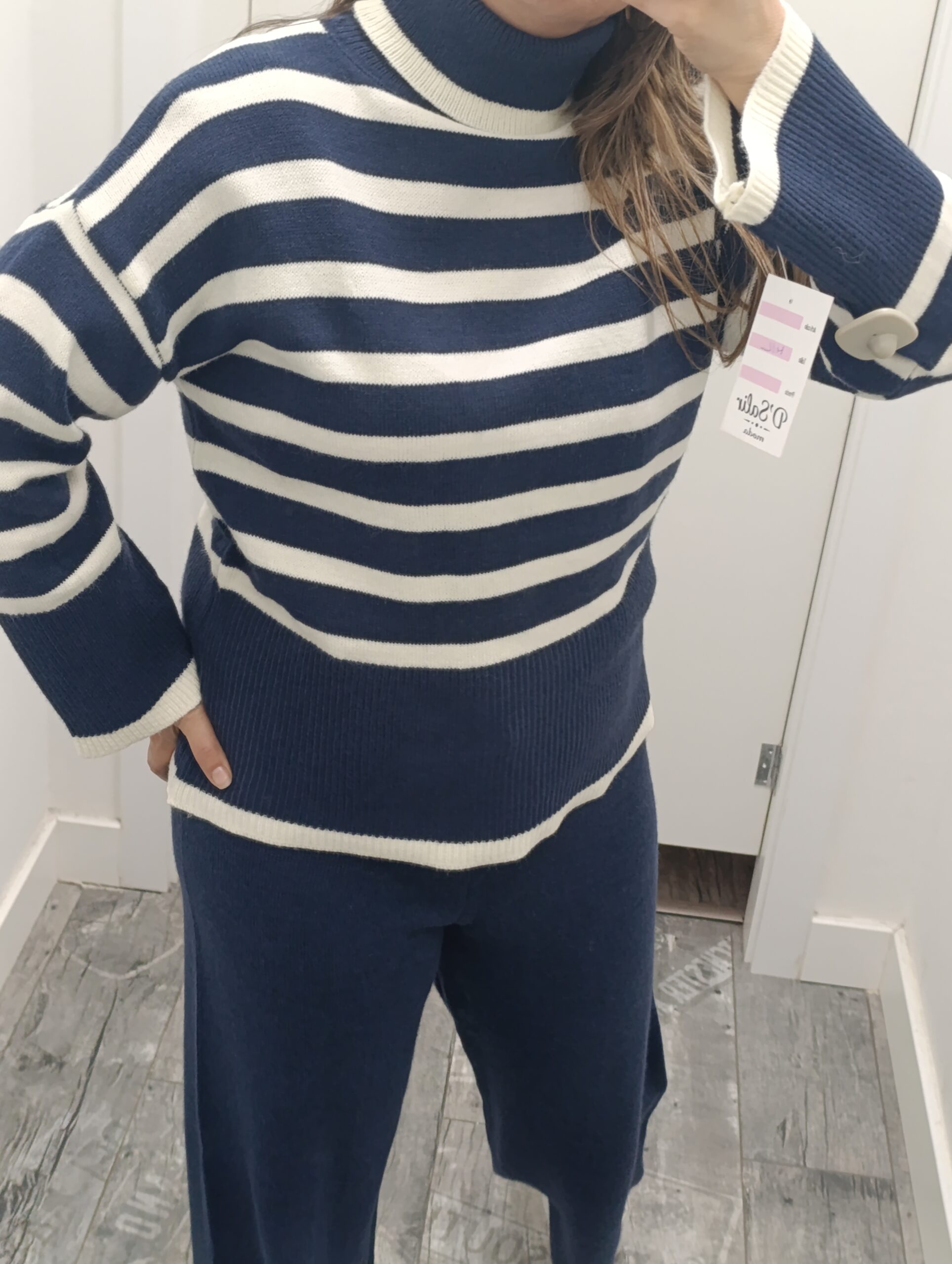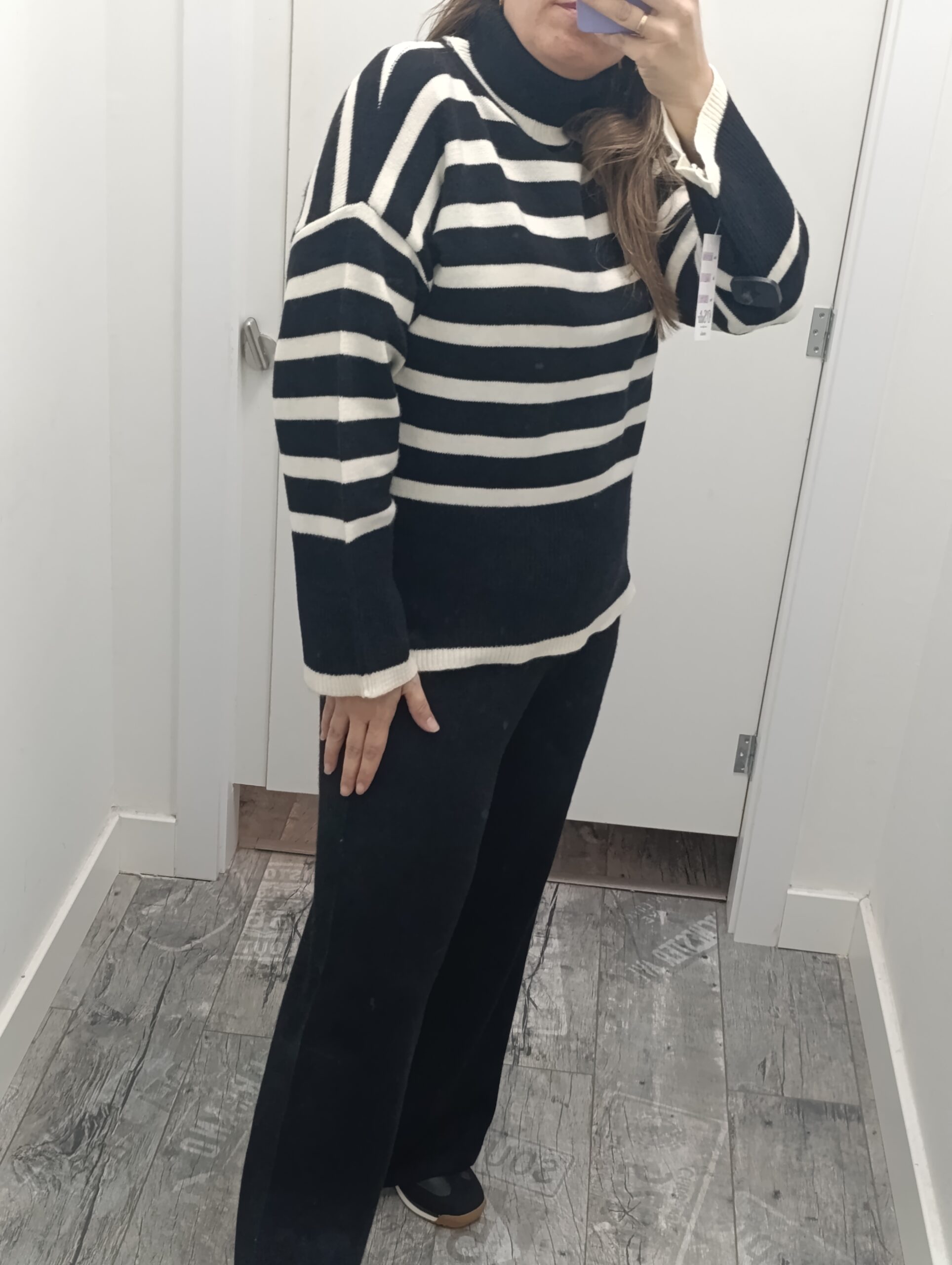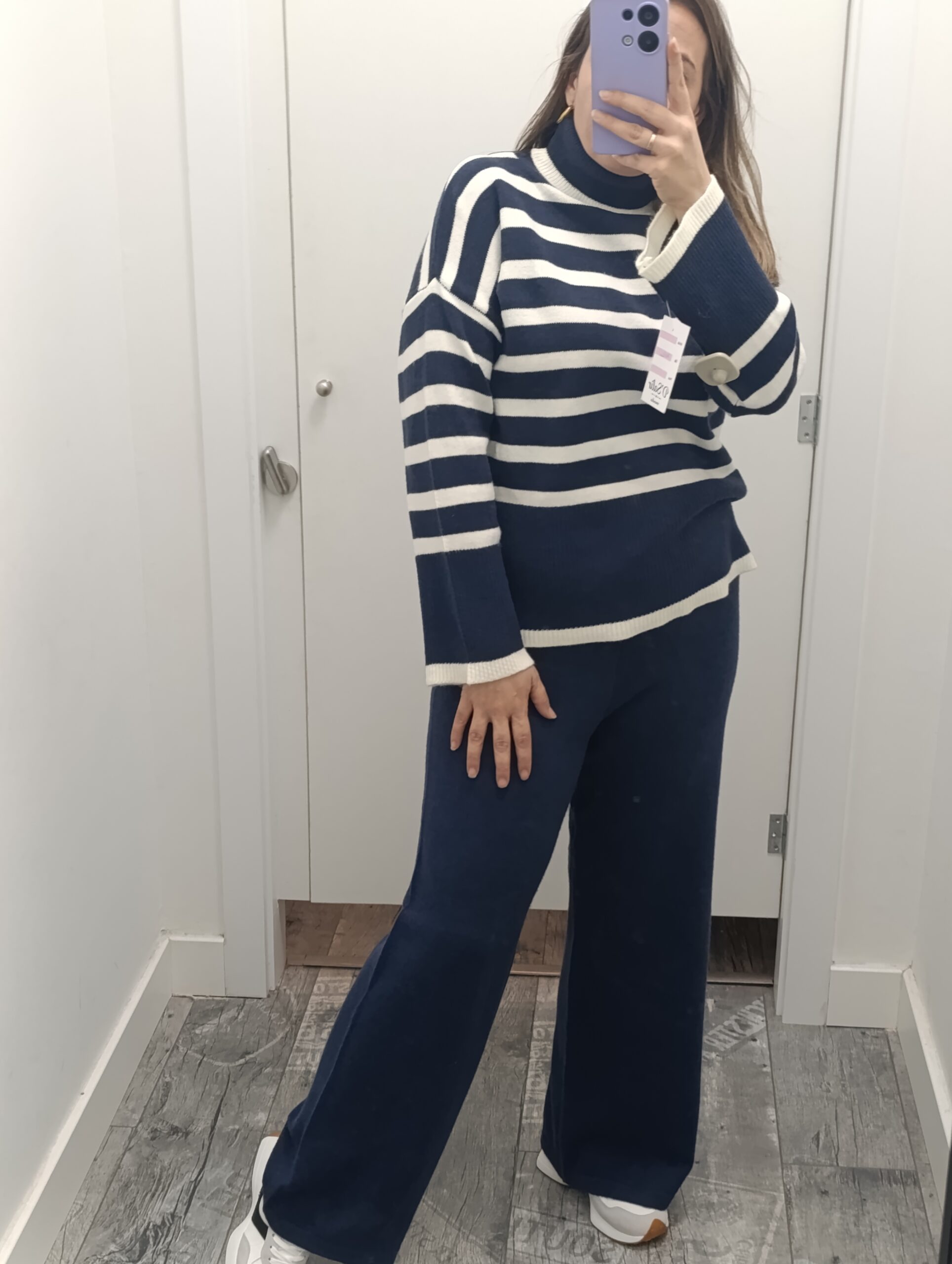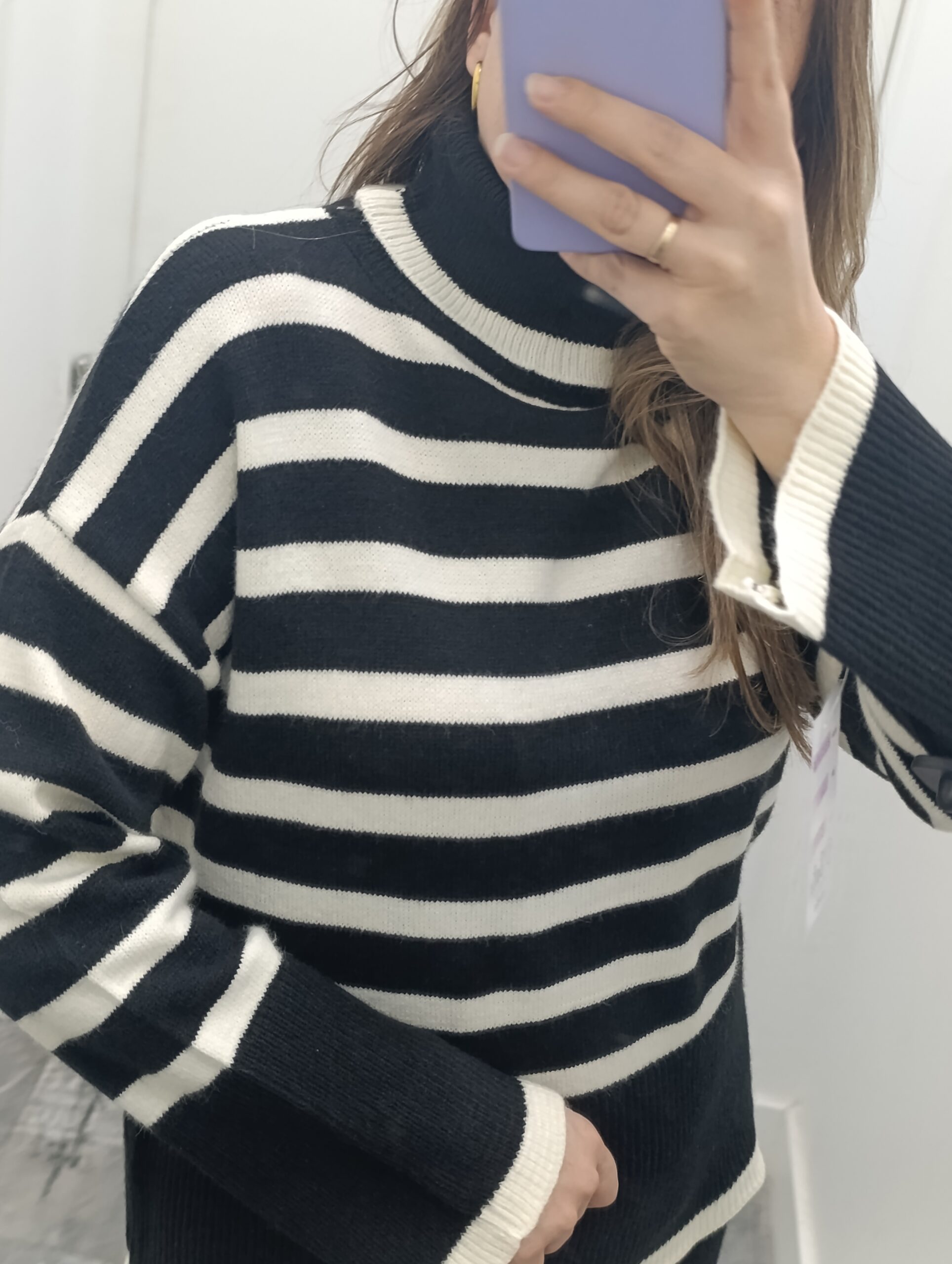 Conjunto de pantalón y jersey de cuello vuelto. Viene en dos tallas
