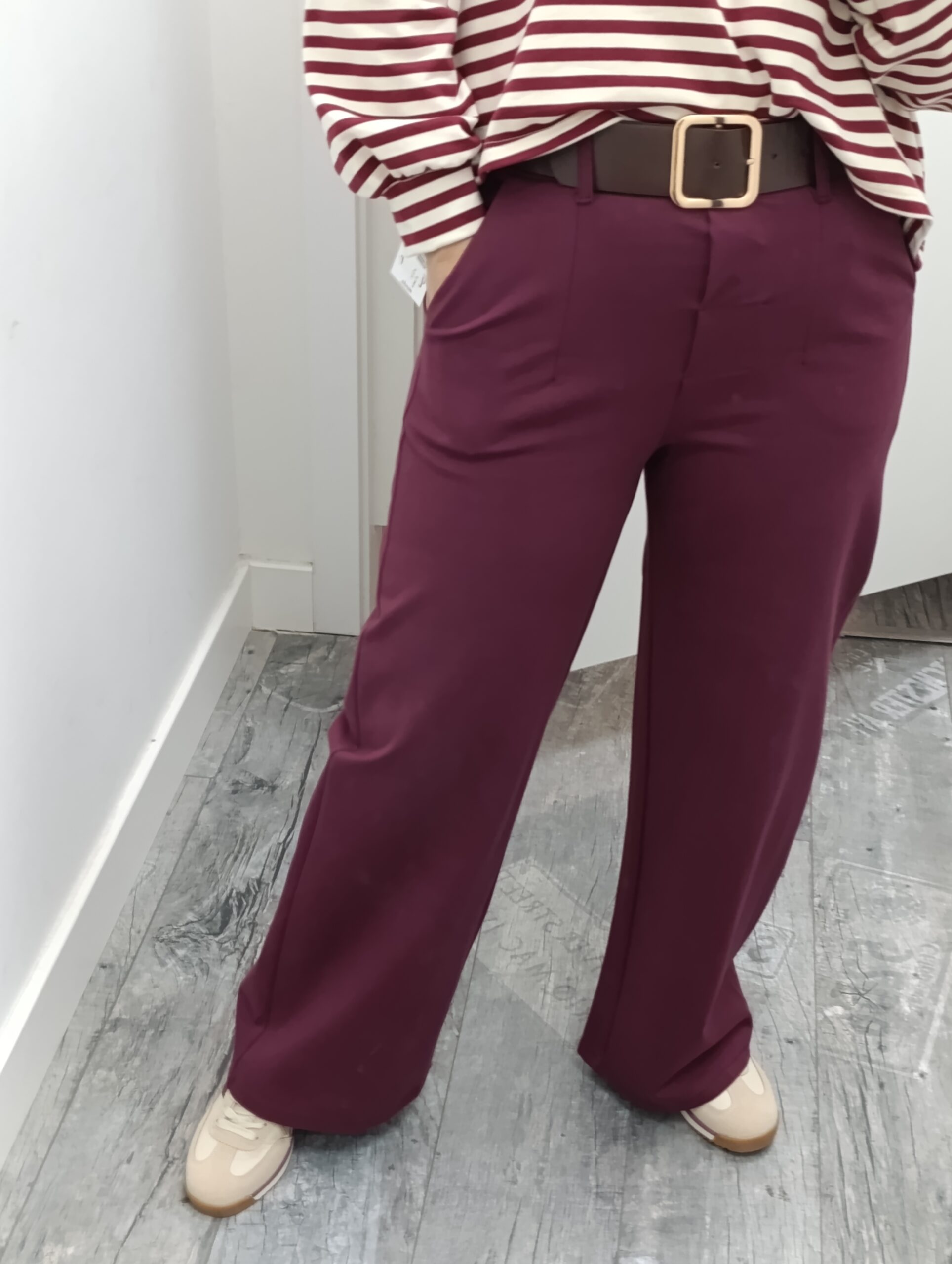 Pantalón en tejido punto roma y es elástico. Lleva bolsillos y lleva incluido el cinturón.