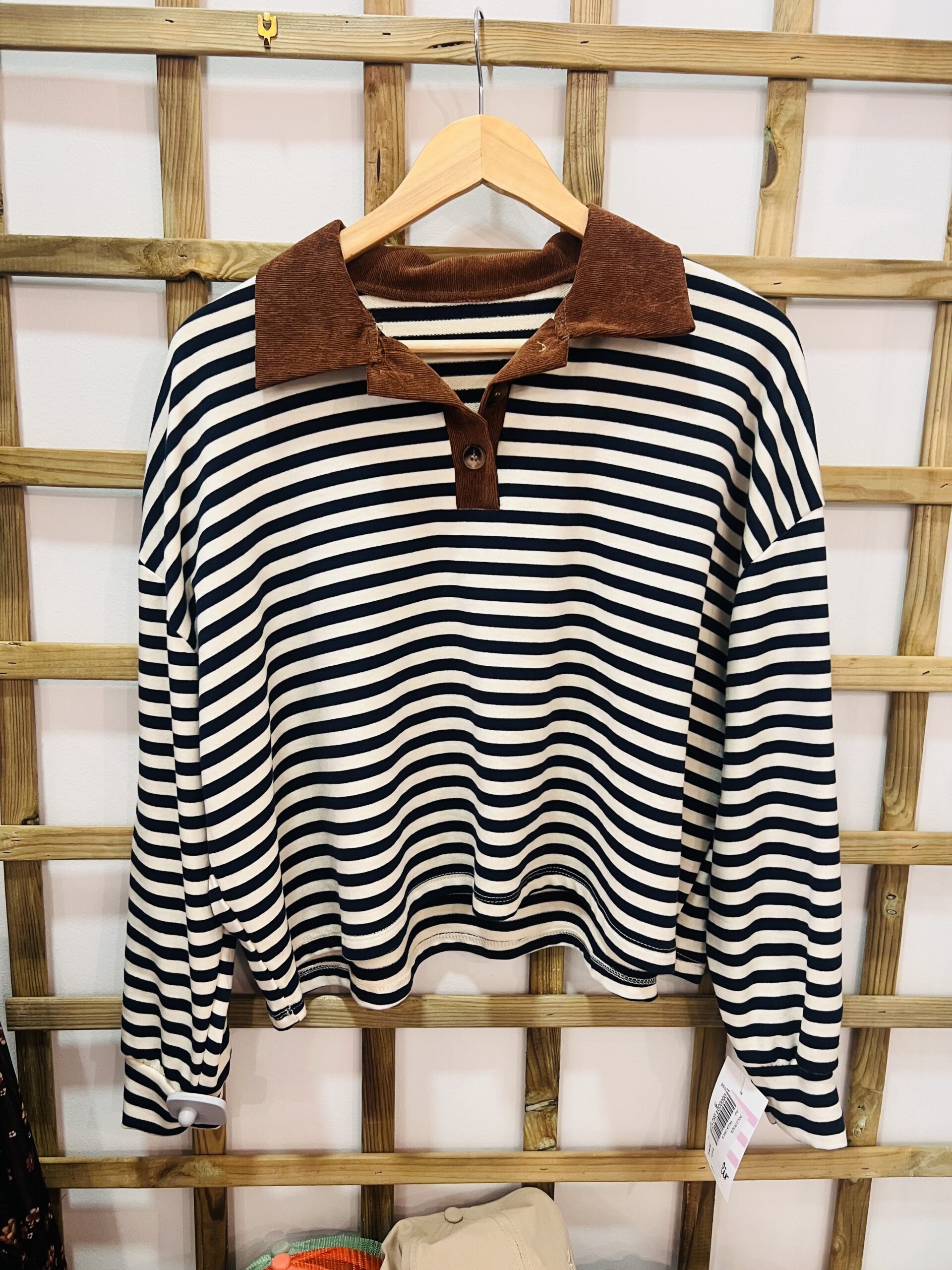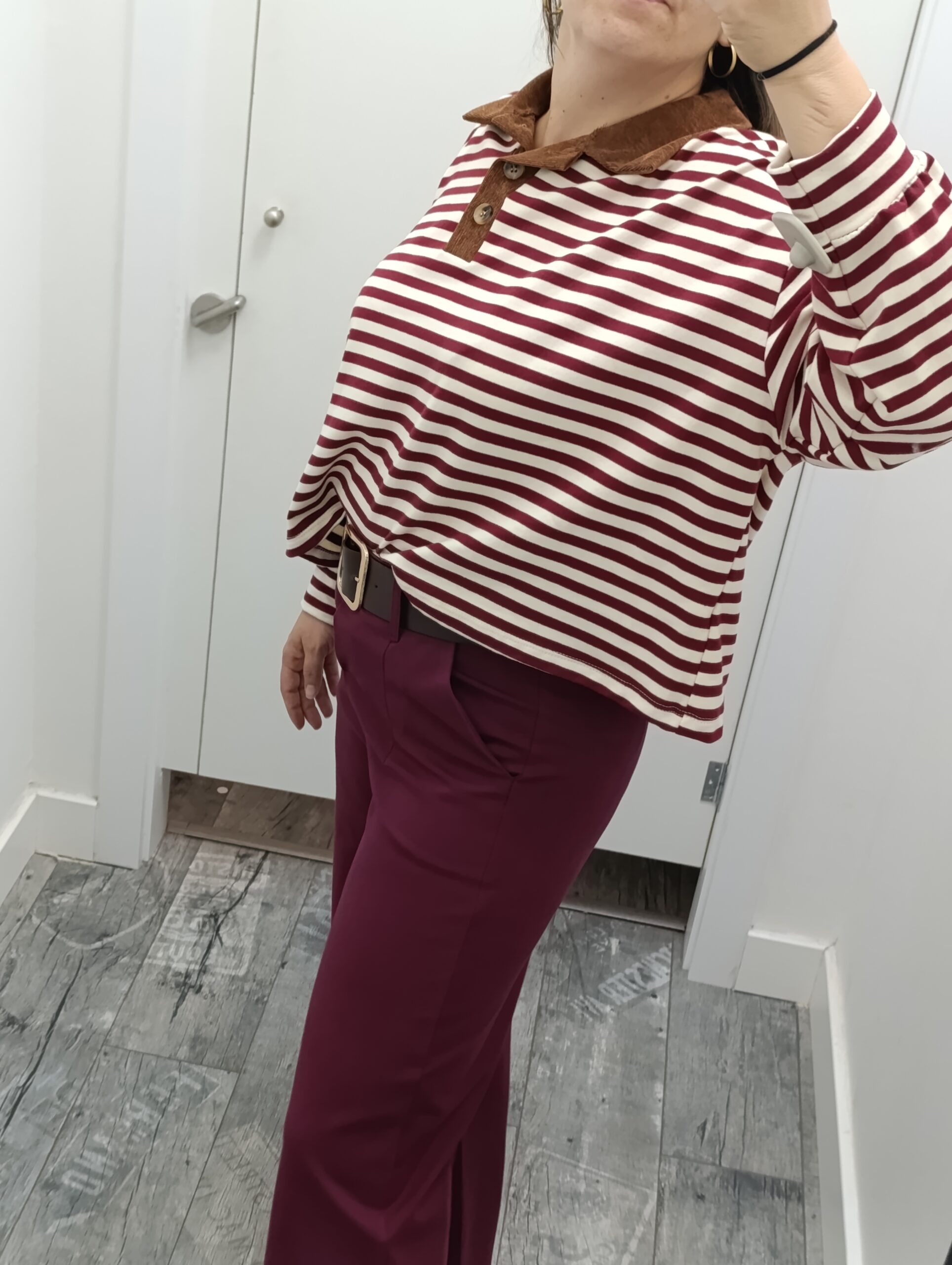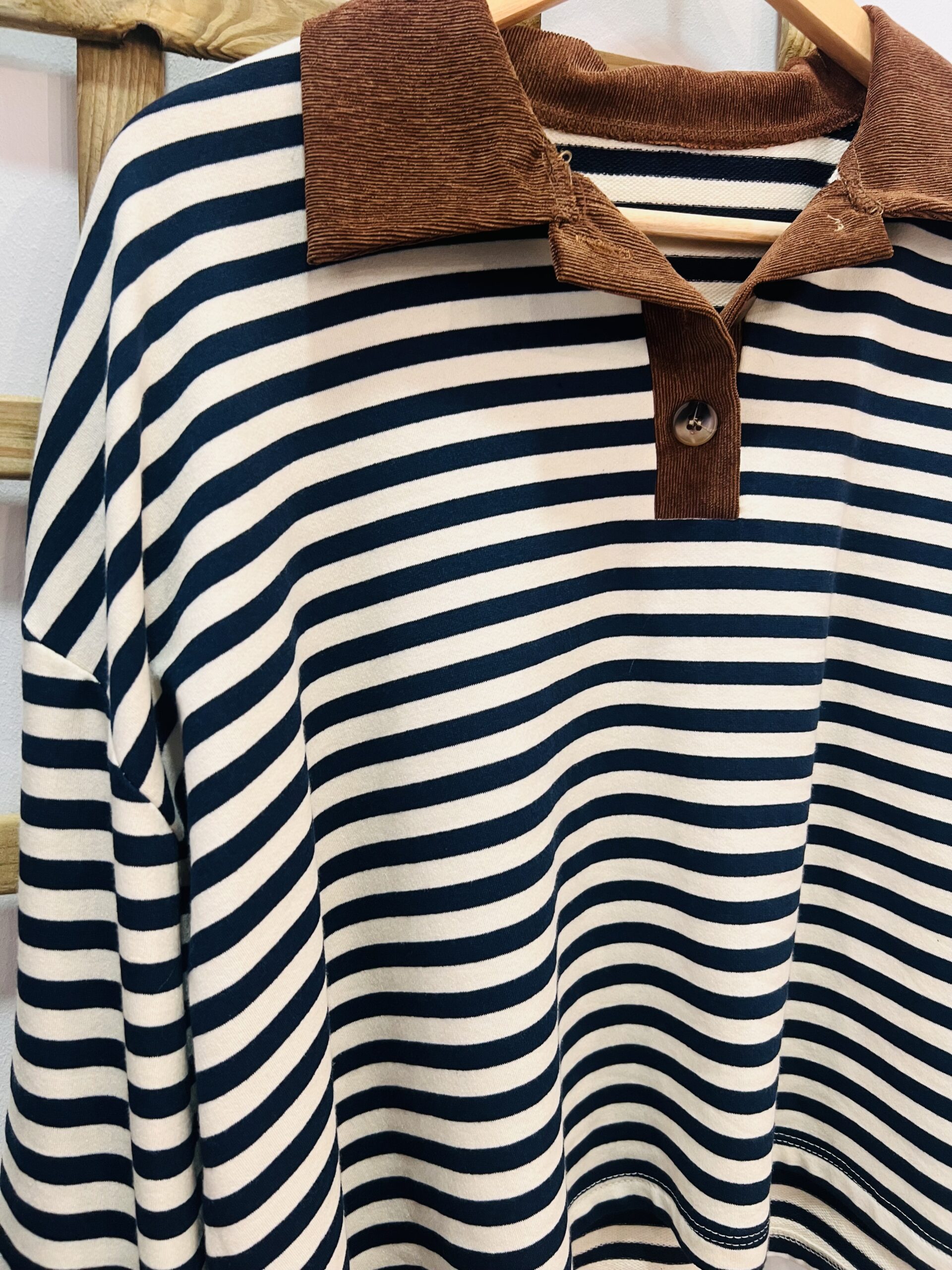 Camiseta tipo polo con cuello en antelina marron. Es talla única valido hasta una 42.